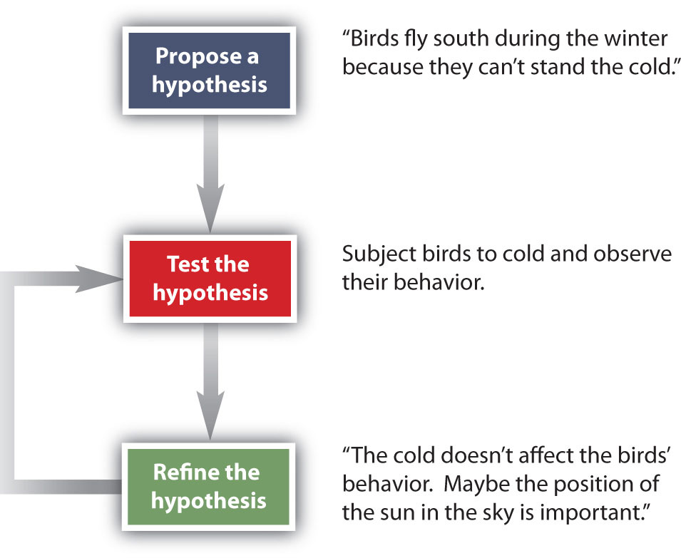 propose a hypothesis, test the hypothesis, and refine the hypothesis if necessary