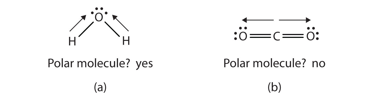 The physical properties of water and carbon dioxide are affected by their polarities.