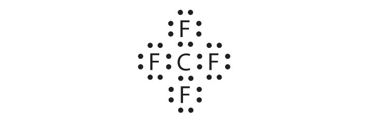 Draw the Lewis diagram for the covalent bonding in CF4. How many bonding electrons and nonbonding electrons are in the molecule?