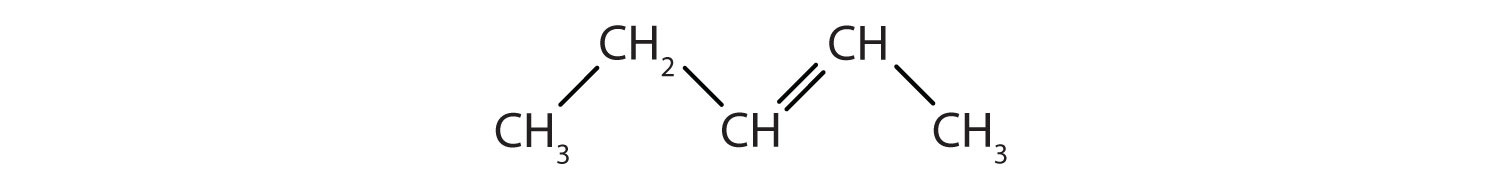 Some hydrocarbons have one or more carbon–carbon double bonds (denoted C=C). These hydrocarbons are called alkenesA hydrocarbon with one or more carbon–carbon double bonds.. Figure 4.7 "Formulas and Molecular Models of the Two Simplest Alkenes" shows the formulas and the molecular models of the two simplest alkenes. Note that the names of alkenes have the same stem as the alkane with the same number of carbon atoms in its chain but have the ending -ene. Thus, ethene is an alkene with two carbon atoms per molecule, and propene is a compound with three carbon atoms and one double bond.