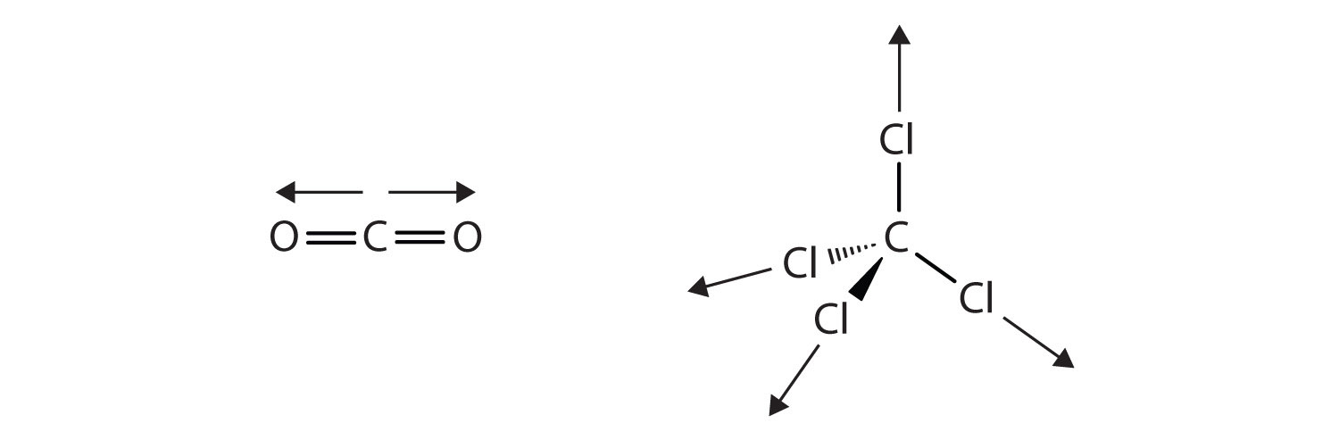 Although the individual bonds in both CO2 and CCl4 are polar, their effects cancel out because of the spatial orientation of the bonds in each molecule. As a result, such molecules experience little or no dipole-dipole interaction.