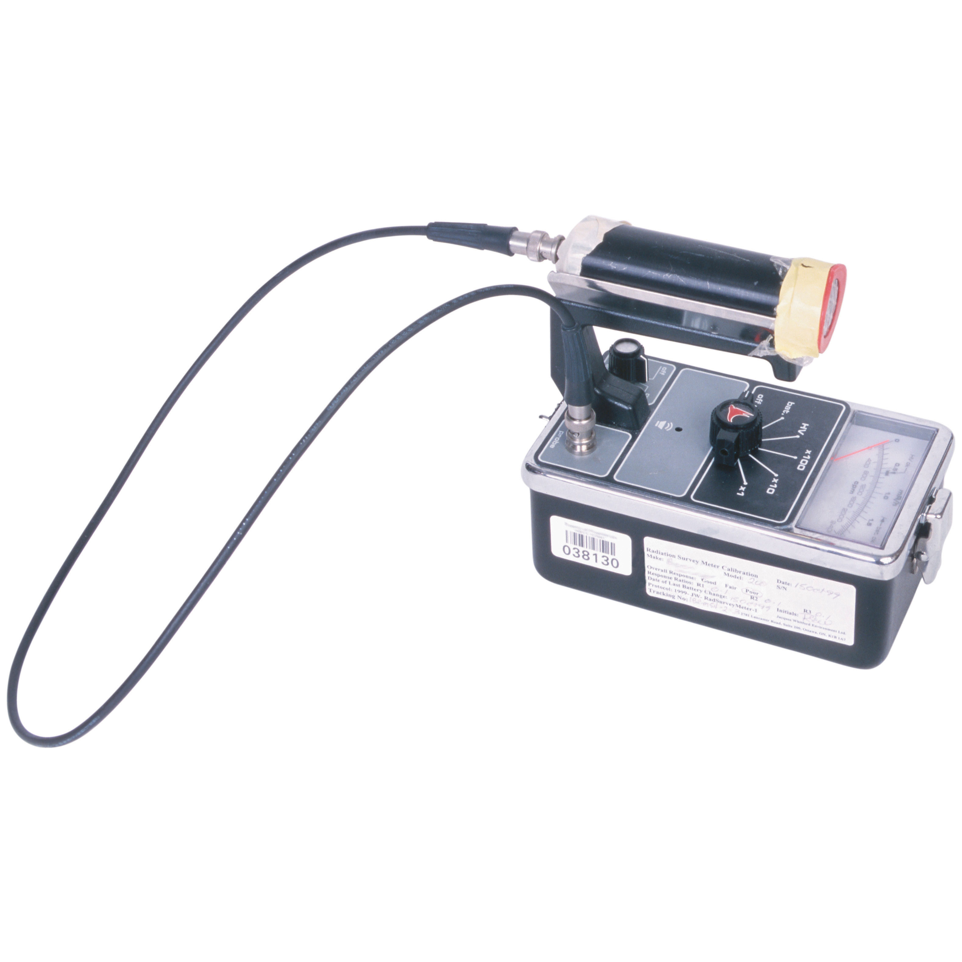 Another means of detecting radioactivity is an electrical device called a Geiger counterAn electrical device that detects radioactivity. (Figure 11.2 "Detecting Radioactivity"). It contains a gas-filled chamber with a thin membrane on one end that allows radiation emitted from radioactive nuclei to enter the chamber and knock electrons off atoms of gas (usually argon). The presence of electrons and positively charged ions causes a small current, which is detected by the Geiger counter and converted to a signal on a meter or, commonly, an audio circuit to produce an audible “click.”