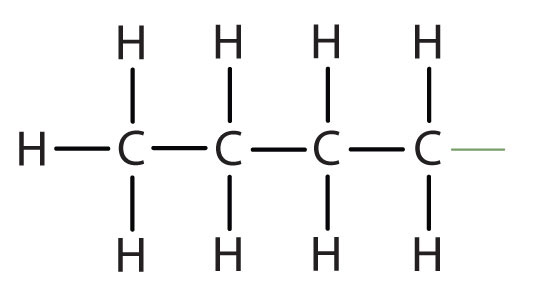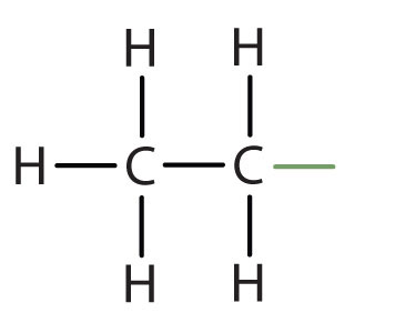 An alkyl groupA hydrocarbon group derived from an alkane by removal of a hydrogen atom. is a group of atoms that results when one hydrogen atom is removed from an alkane. The group is named by replacing the -ane suffix of the parent hydrocarbon with -yl. For example, the CH3 group derived from methane (CH4) results from subtracting one hydrogen atom and is called a methyl group.