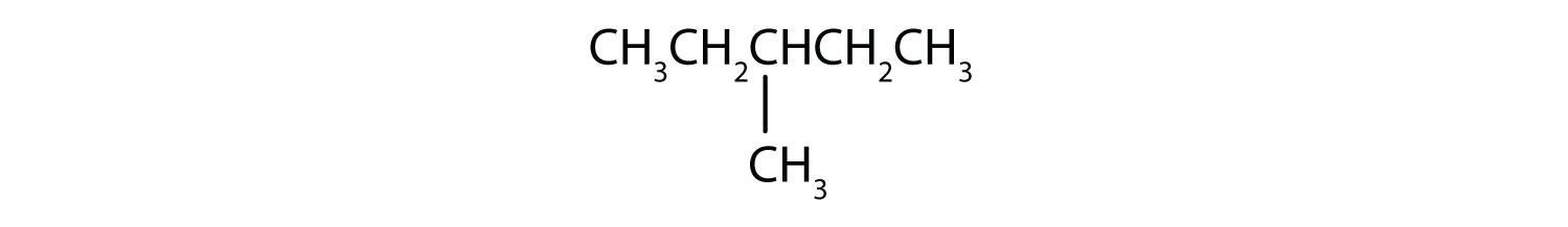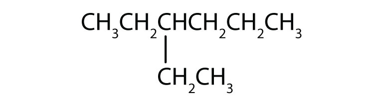 As noted in Table 12.2 "The First 10 Straight-Chain Alkanes", the number of isomers increases rapidly as the number of carbon atoms increases. There are 3 pentanes, 5 hexanes, 9 heptanes, and 18 octanes. It would be difficult to assign unique individual names that we could remember. A systematic way of naming hydrocarbons and other organic compounds has been devised by the International Union of Pure and Applied Chemistry (IUPAC). These rules, used worldwide, are known as the IUPAC System of NomenclatureA systematic way of naming chemical substances so that each has a unique name.. (Some of the names we used earlier, such as isobutane, isopentane, and neopentane, do not follow these rules and are called common names.) A stem name (Table 12.3 "Stems That Indicate the Number of Carbon Atoms in Organic Molecules") indicates the number of carbon atoms in the longest continuous chain (LCC). Atoms or groups attached to this carbon chain, called substituents, are then named, with their positions indicated by numbers. For now, we will consider only those substituents called alkyl groups.
