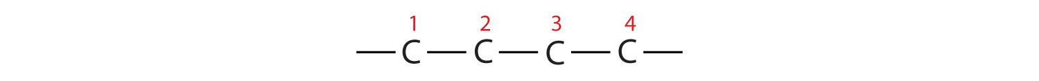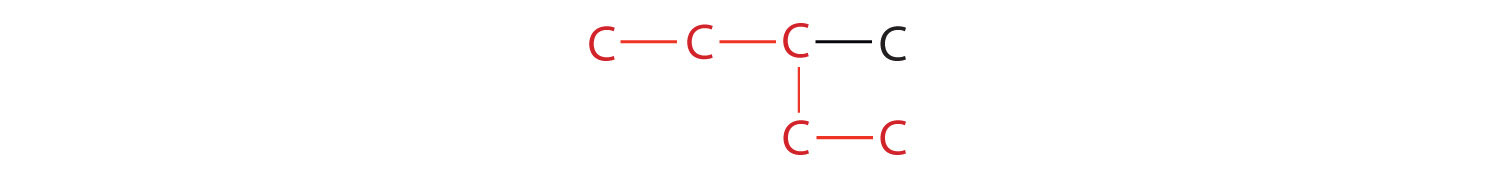 2. If the hydrocarbon is branched, number the carbon atoms of the LCC. Numbers are assigned in the direction that gives the lowest numbers to the carbon atoms with attached substituents. Hyphens are used to separate numbers from the names of substituents; commas separate numbers from each other. (The LCC need not be written in a straight line; for example, the LCC in the following has five carbon atoms.)