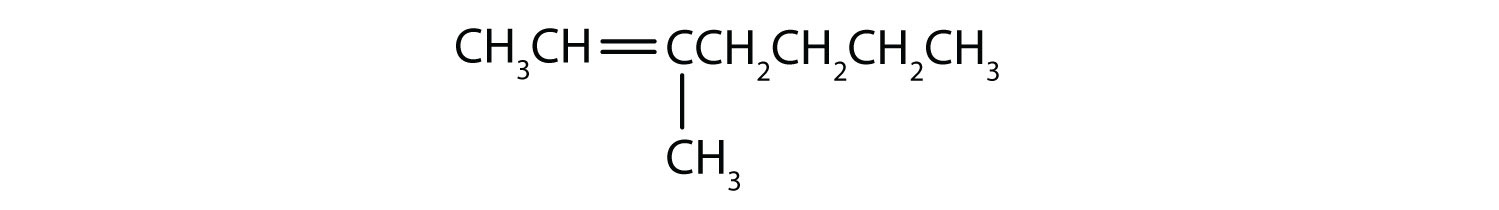 is 5-methyl-2-hexene. Note that the numbering of the parent chain is always done in such a way as to give the double bond the lowest number, even if that causes a substituent to have a higher number. The double bond always has priority in numbering.