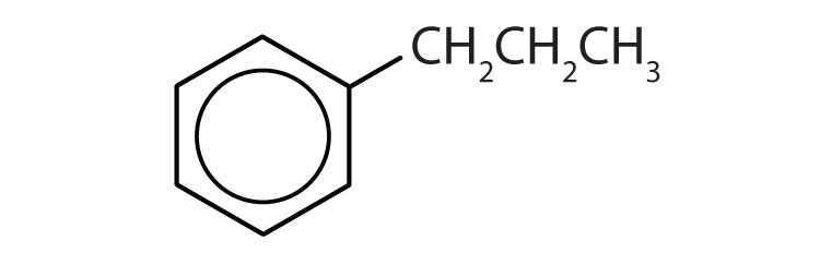 In the International Union of Pure and Applied Chemistry (IUPAC) system, aromatic hydrocarbons are named as derivatives of benzene. Figure 13.6 "Some Benzene Derivatives" shows four examples. In these structures, it is immaterial whether the single substituent is written at the top, side, or bottom of the ring: a hexagon is symmetrical, and therefore all positions are equivalent.
