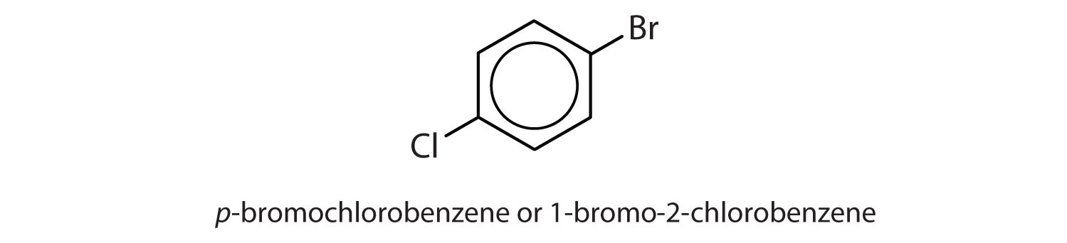 In Figure 13.7 "The Three Isomeric Dichlorobenzenes", common names are also used: the prefix ortho (o-) for 1,2-disubstitution, meta (m-) for 1,3-disubstitution, and para (p-) for 1,4-disubstitution.