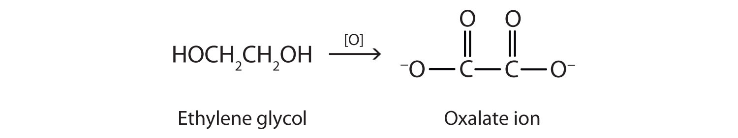 Ethylene glycol is quite toxic. Because it is sweet, pets often lap up spills of leaked antifreeze from a garage floor or driveway. Sometimes people, especially children, drink it. As with methanol, its toxicity is due to a metabolite. Liver enzymes oxidize ethylene glycol to oxalate ion.