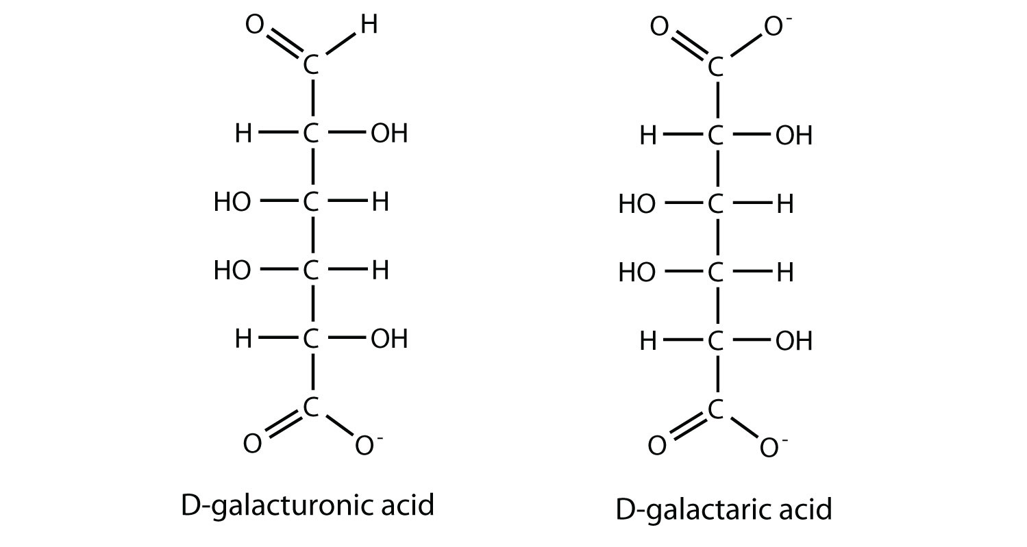 D-Galactose can be oxidized at the sixth carbon atom to yield D-galacturonic acid and at both the first and sixth carbon atoms to yield D-galactaric acid. Draw the Fischer projection for each oxidation product.