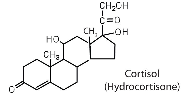 The adrenocortical hormones, such as aldosterone and cortisol (Table 17.3 "Representative Steroid Hormones and Their Physiological Effects"), are produced by the adrenal gland, which is located adjacent to each kidney. Aldosterone acts on most cells in the body, but it is particularly effective at enhancing the rate of reabsorption of sodium ions in the kidney tubules and increasing the secretion of potassium ions and/or hydrogen ions by the tubules. Because the concentration of sodium ions is the major factor influencing water retention in tissues, aldosterone promotes water retention and reduces urine output. Cortisol regulates several key metabolic reactions (for example, increasing glucose production and mobilizing fatty acids and amino acids). It also inhibits the inflammatory response of tissue to injury or stress. Cortisol and its analogs are therefore used pharmacologically as immunosuppressants after transplant operations and in the treatment of severe skin allergies and autoimmune diseases, such as rheumatoid arthritis.
