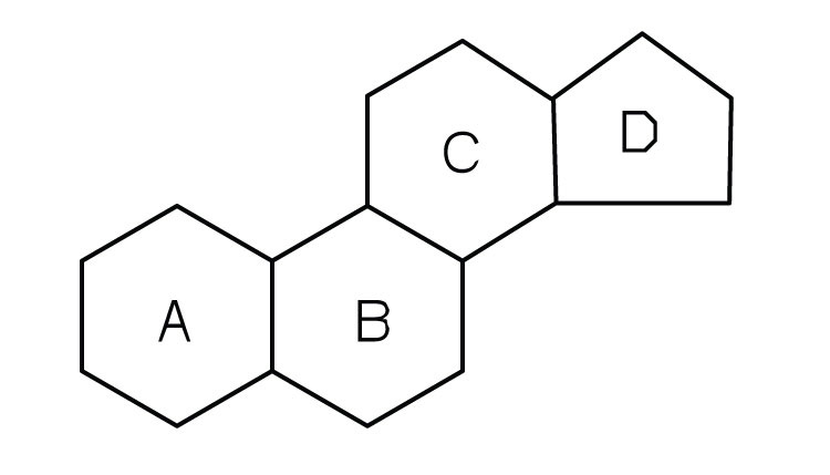Draw the basic steroid skeleton and label each ring with the appropriate letter designation.