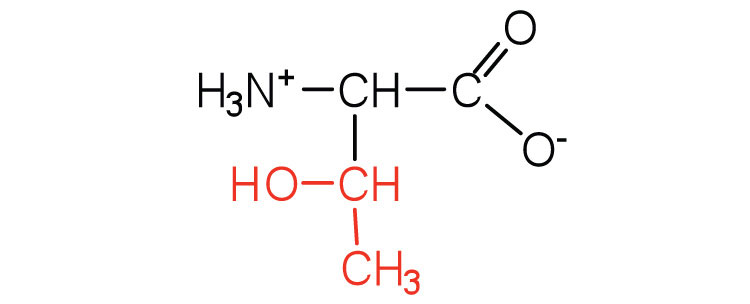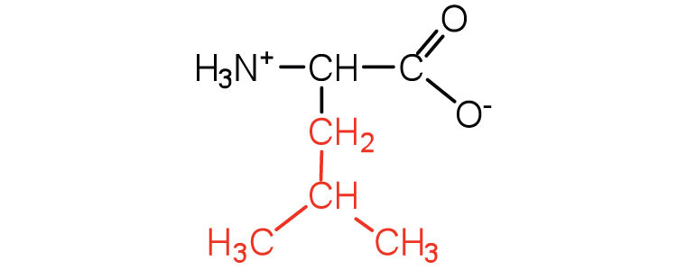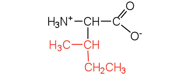 In addition to the amino and carboxyl groups, amino acids have a side chain or R group attached to the α-carbon. Each amino acid has unique characteristics arising from the size, shape, solubility, and ionization properties of its R group. As a result, the side chains of amino acids exert a profound effect on the structure and biological activity of proteins. Although amino acids can be classified in various ways, one common approach is to classify them according to whether the functional group on the side chain at neutral pH is nonpolar, polar but uncharged, negatively charged, or positively charged. The structures and names of the 20 amino acids, their one- and three-letter abbreviations, and some of their distinctive features are given in Table 18.2 "Common Amino Acids Found in Proteins".