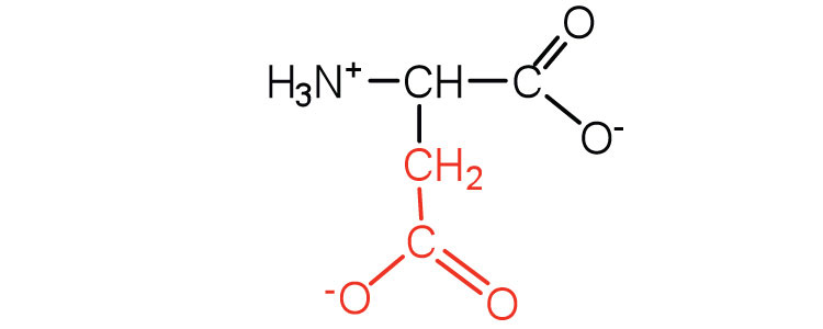 132 | carboxyl groups are ionized at physiological pH; also known as aspartate |