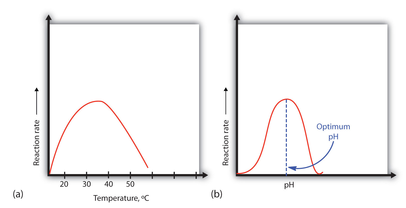 Most enzymes have maximal activity in a narrow pH range centered on an optimum pH. In this pH range, the enzyme is correctly folded, and catalytic groups in the active site have the correct charge (positive, negative, or neutral). For most enzymes, the optimum pH is between 6 and 8.