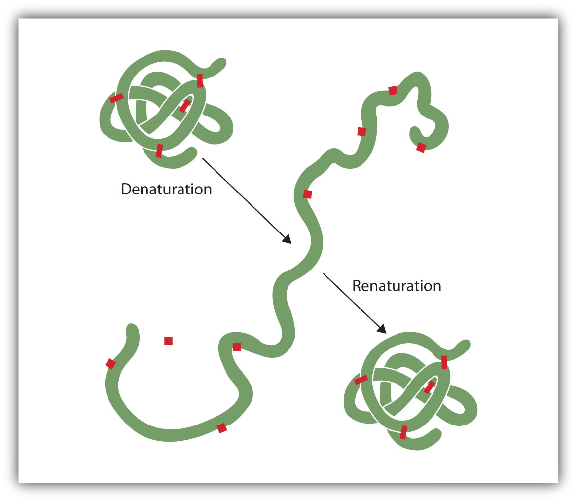 Because of their complexity, protein molecules are delicate and easy to disrupt. A denatured protein is one whose conformation has been changed, in a process called denaturation, so that it can no longer do its physiological job. A variety of conditions, such as heat, ultraviolet radiation, the addition of organic compounds, or changes in pH can denature a protein.