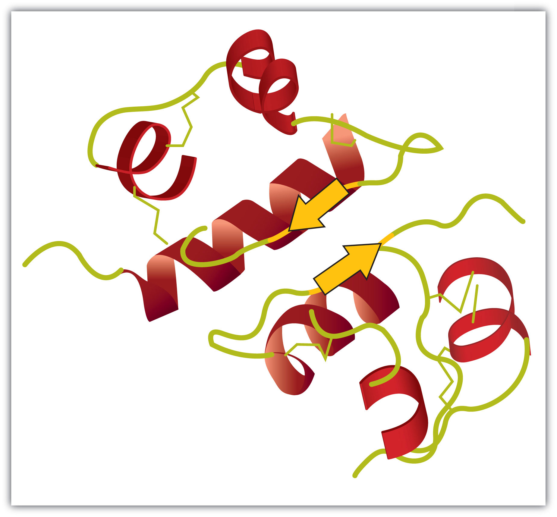 ProteinsA compound of high molar mass consisting largely or entirely of amino acids linked together. may be defined as compounds of high molar mass consisting largely or entirely of chains of amino acids. Their masses range from several thousand to several million daltons (Da). In addition to carbon, hydrogen, and oxygen atoms, all proteins contain nitrogen and sulfur atoms, and many also contain phosphorus atoms and traces of other elements. Proteins serve a variety of roles in living organisms and are often classified by these biological roles, which are summarized in Table 18.1 "Classification of Proteins by Biological Function". Muscle tissue is largely protein, as are skin and hair. Proteins are present in the blood, in the brain, and even in tooth enamel. Each type of cell in our bodies makes its own specialized proteins, as well as proteins common to all or most cells.