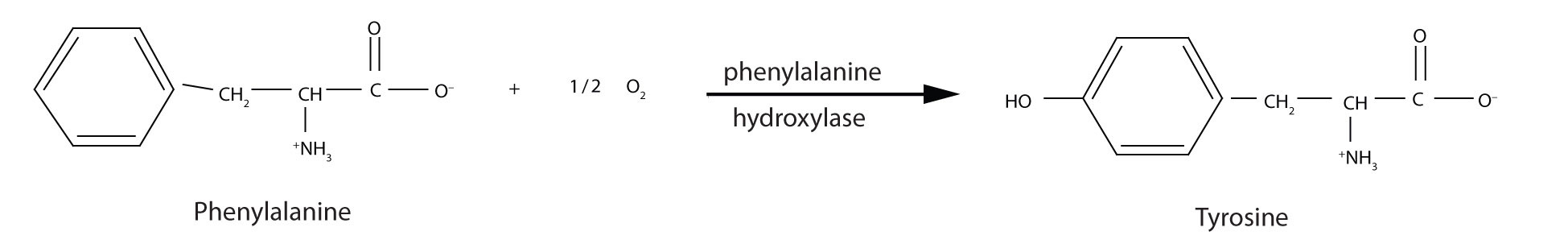 PKU results from the absence of the enzyme phenylalanine hydroxylase. Without this enzyme, a person cannot convert phenylalanine to tyrosine, which is the precursor of the neurotransmitters dopamine and norepinephrine as well as the skin pigment melanin.