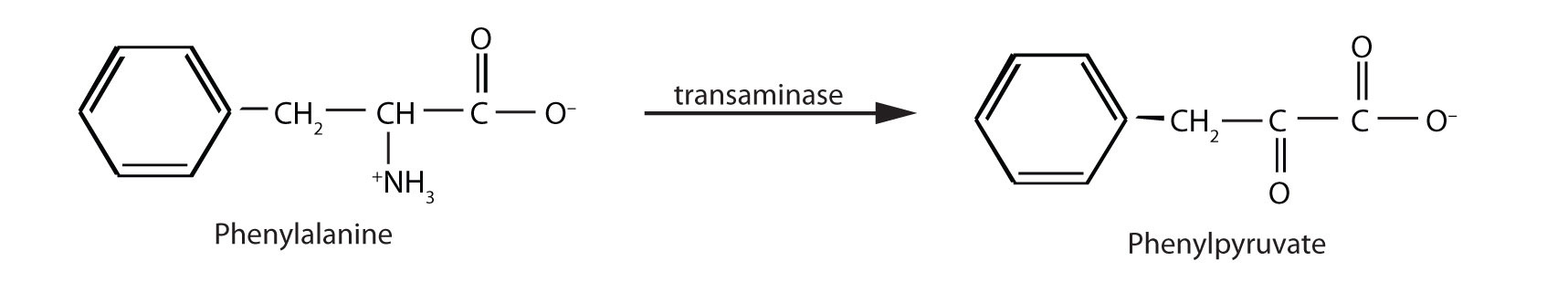When this reaction cannot occur, phenylalanine accumulates and is then converted to higher than normal quantities of phenylpyruvate. The disease acquired its name from the high levels of phenylpyruvate (a phenyl ketone) in urine. Excessive amounts of phenylpyruvate impair normal brain development, which causes severe mental retardation.