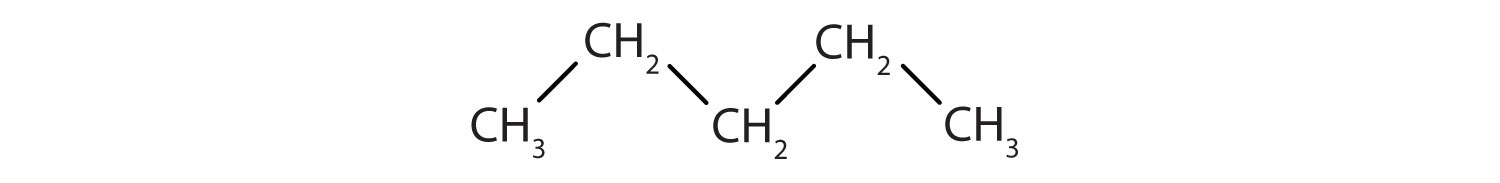 The simplest organic compounds are the hydrocarbonsThe simplest organic compound, composed of carbon and hydrogen atoms only., compounds composed of carbon and hydrogen atoms only. Some hydrocarbons have only single bonds and appear as a chain (which can be a straight chain or can have branches) of carbon atoms also bonded to hydrogen atoms. These hydrocarbons are called alkanes (saturated hydrocarbons)A hydrocarbon with only single covalent bonds and existing as a chain of carbon atoms also bonded to hydrogen atoms.. Each alkane has a characteristic, systematic name depending on the number of carbon atoms in the molecule. These names consist of a stem that indicates the number of carbon atoms in the chain plus the ending -ane. The stem meth- means one carbon atom, so methane is an alkane with one carbon atom. Similarly, the stem eth- means two carbon atoms; ethane is an alkane with two carbon atoms. Continuing, the stem prop- means three carbon atoms, so propane is an alkane with three carbon atoms. Figure 4.6 "Formulas and Molecular Models of the Three Simplest Alkanes" gives the formulas and the molecular models of the three simplest alkanes. (For more information about alkanes, see Chapter 12 "Organic Chemistry: Alkanes and Halogenated Hydrocarbons".)