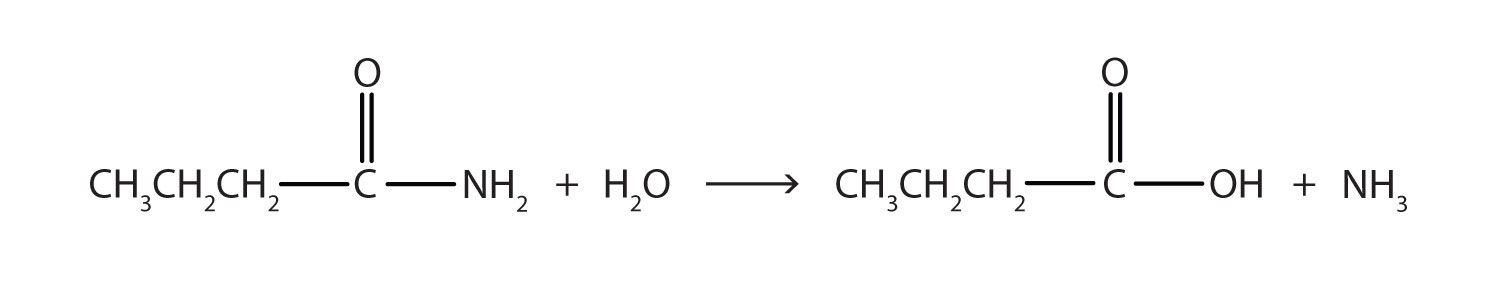 CH3CH2CH2COOH (butanoic acid) and NH3 (ammonia)