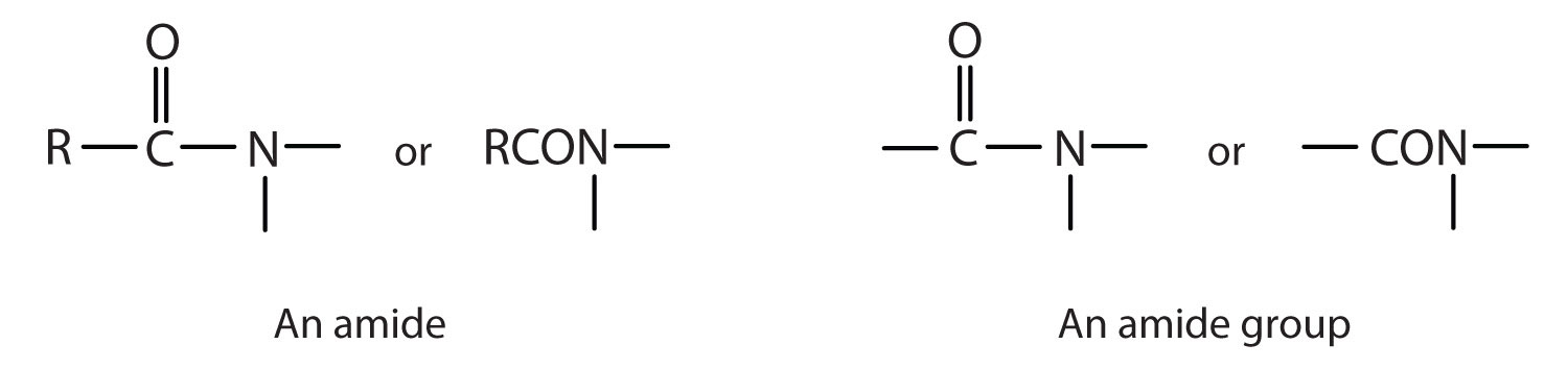 The amideAn organic compound with a carbonyl group joined to a nitrogen atom from ammonia or an amine. functional group has a carbonyl group joined to a nitrogen atom from ammonia or an amine. The properties of the amide functional group differ from those of the simple carbonyl group, NH3, and amines.