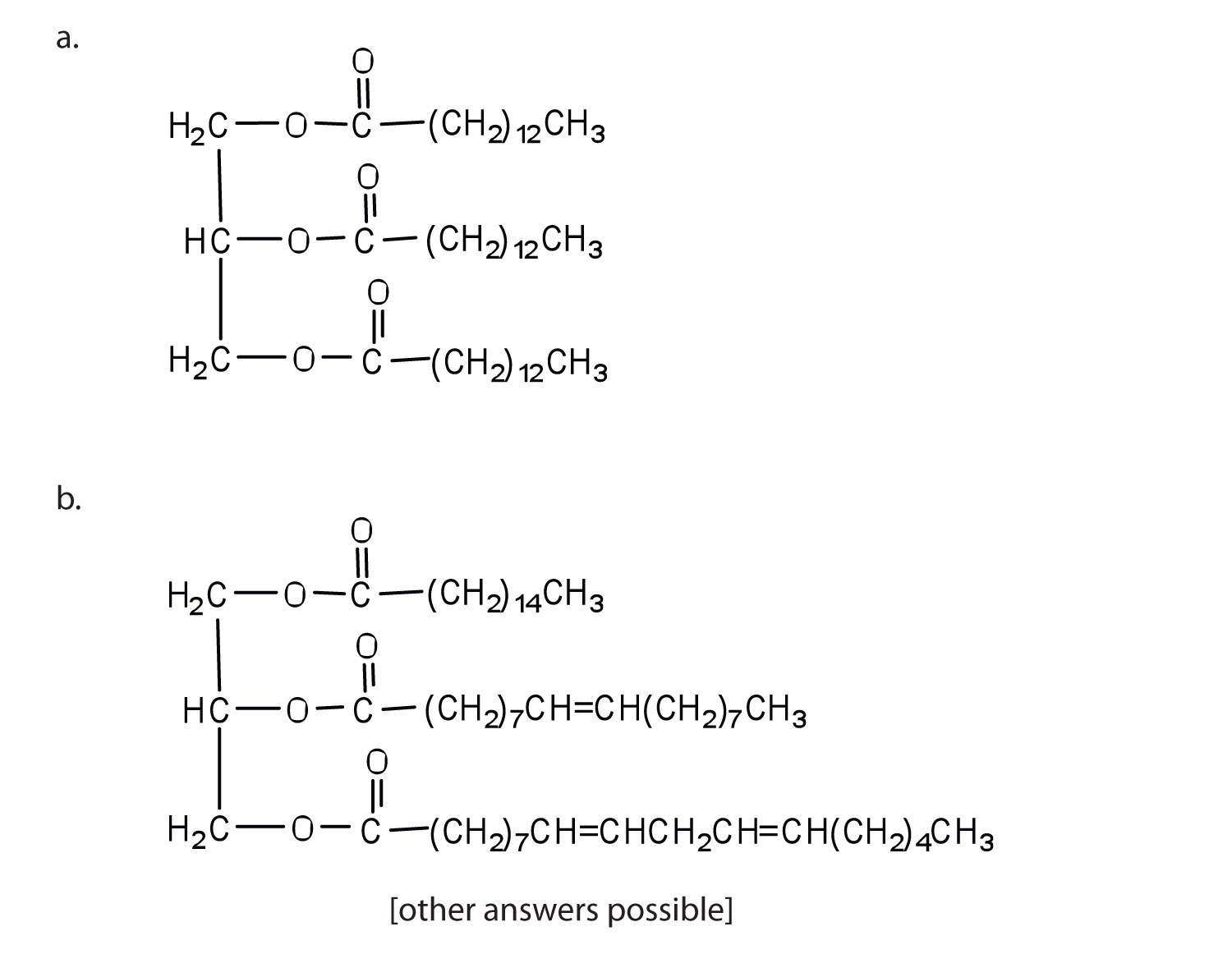 Which of these triglycerides would you expect to find in higher amounts in oils? In fats? Justify your choice.