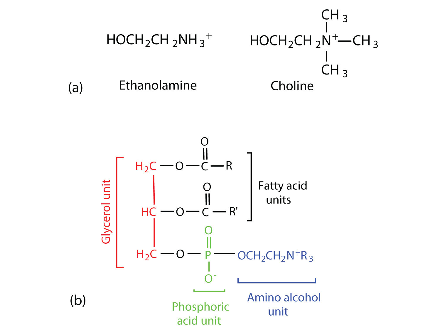 (a) Amino alcohols are commonly found in phosphoglycerides, which are evident in its structural formula (b).