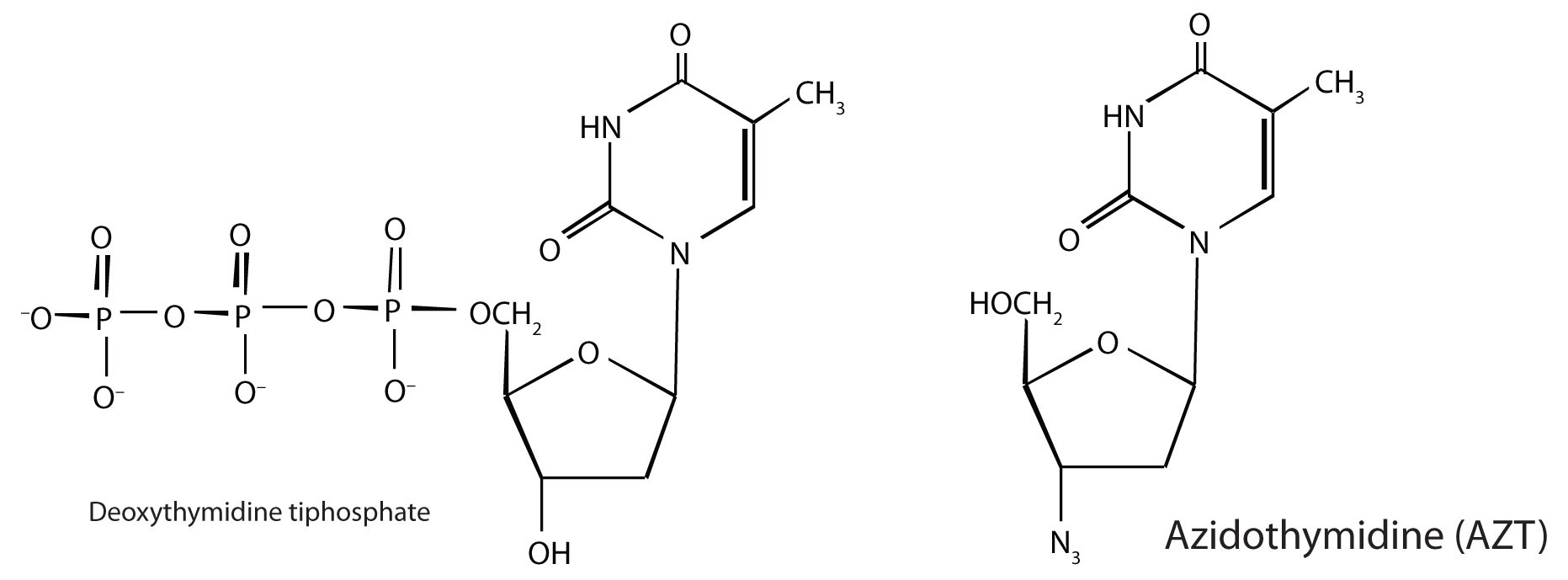 In 1987, azidothymidine (AZT, also known as zidovudine or the brand name Retrovir) became the first drug approved for the treatment of AIDS. It works by binding to reverse transcriptase in place of deoxythymidine triphosphate, after which, because AZT does not have a 3′OH group, further replication is blocked. In the past 10 years, several other drugs have been approved that also act by inhibiting the viral reverse transcriptase.